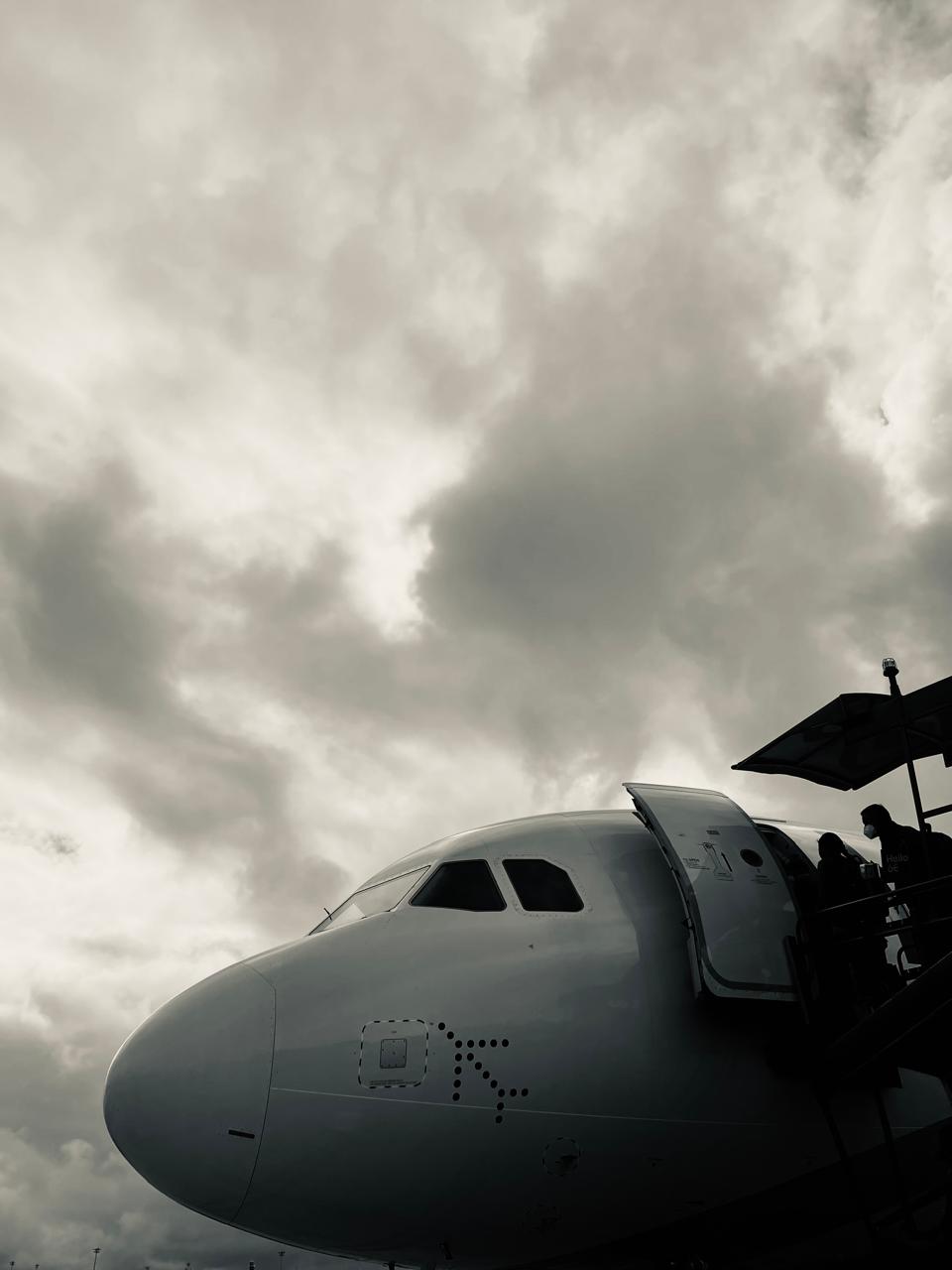 There’s something about watching a plane wait under a grey sky.