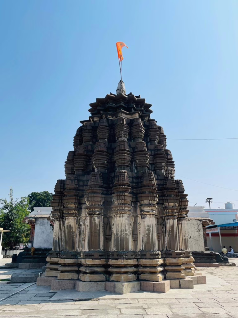 The shikhara reflects the Bhumija style, which is common in temples from the Chalukyan era (10th-11th century).